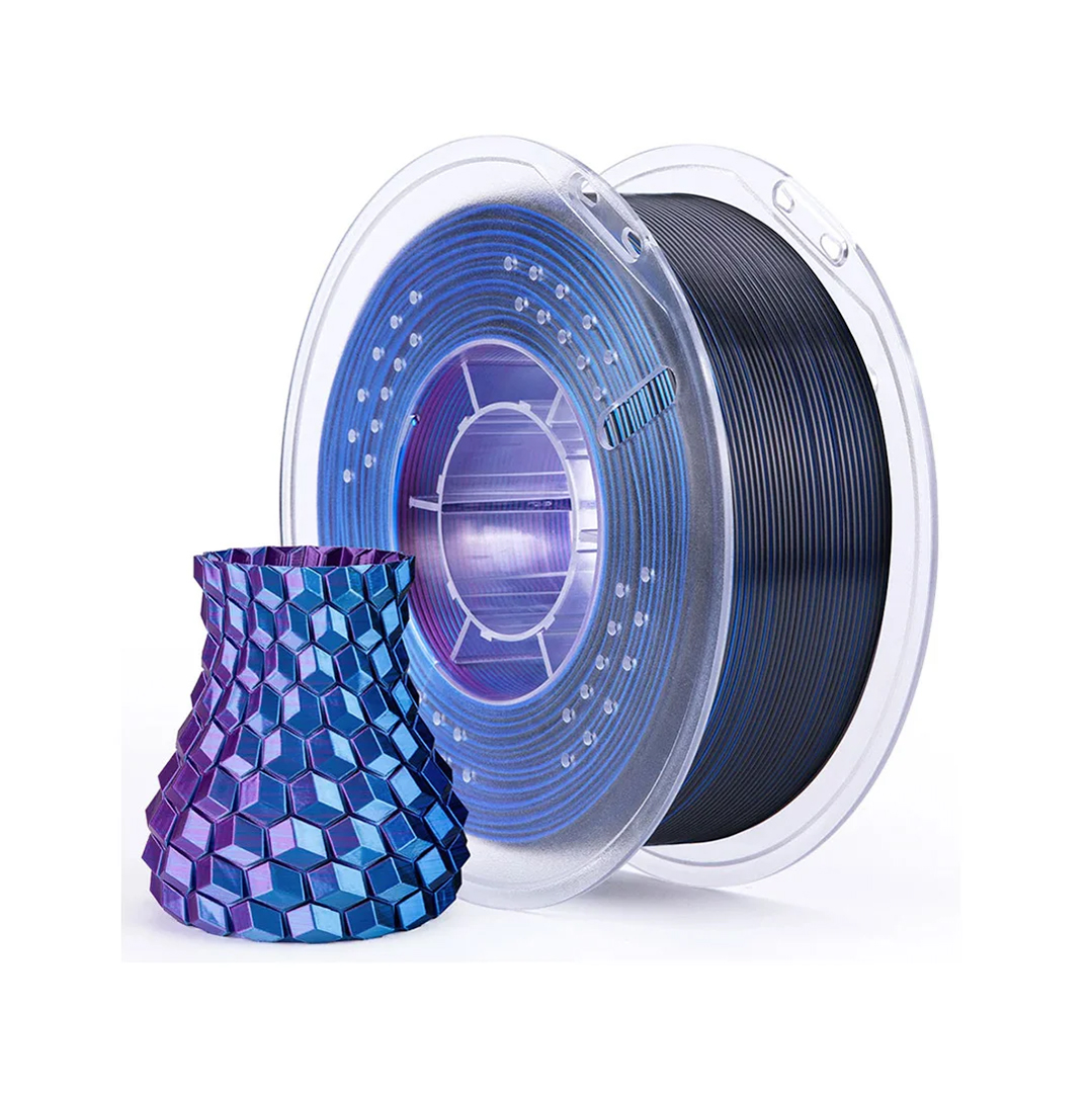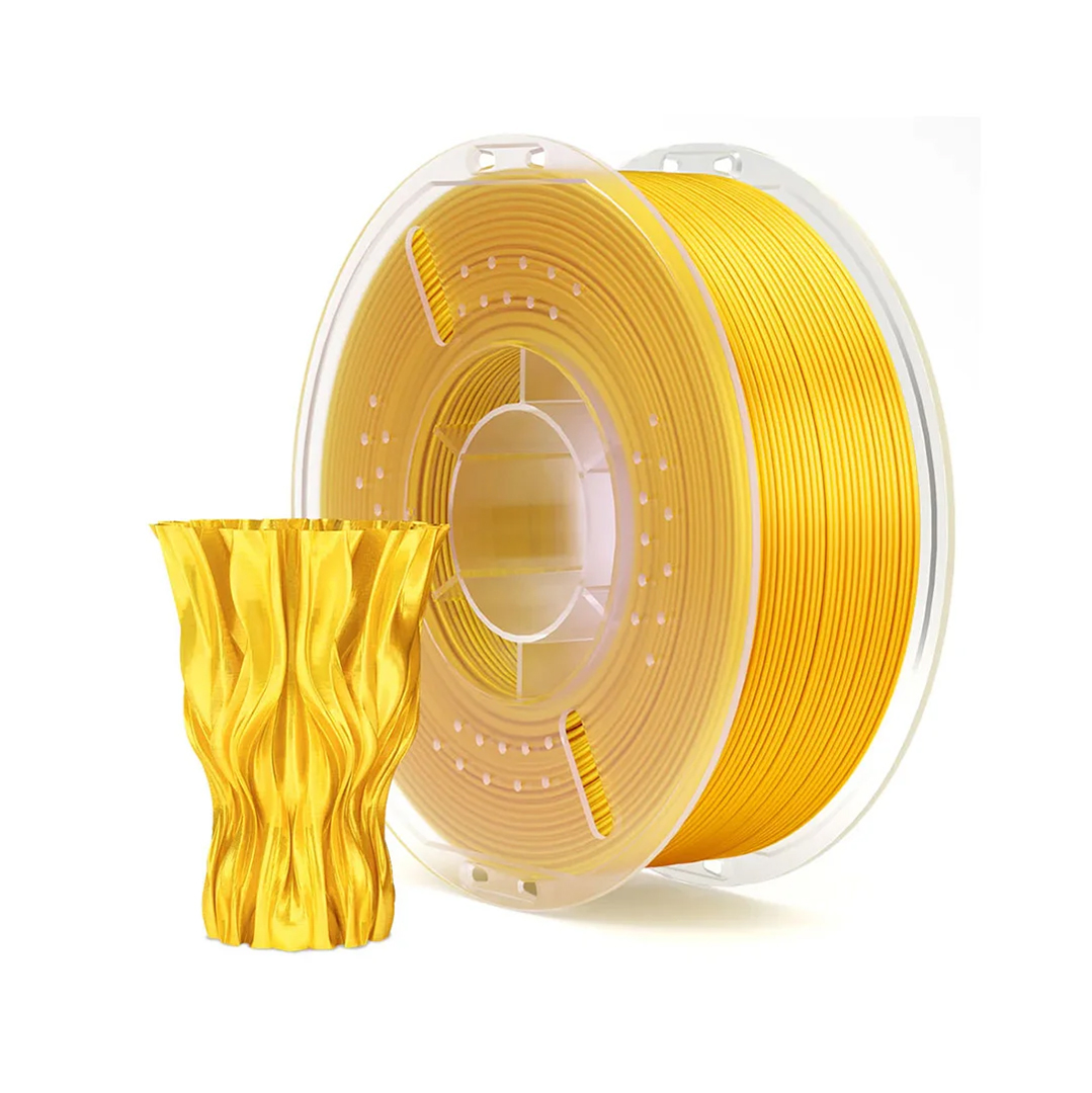 نوع فیلامنت: PLA براق برند Elegoo تنوع رنگ: طیف رنگهای براق و ابریشمی (طلایی، نقرهای، برنزی، آبی، مشکیقرمز و …) قطر فیلامنت: 1.75 میلیمتر (±0.02 میلیمتر) بافت سطح: ظاهر براق و ابریشمی با خطوط لایهای کمنمایان وزن خالص: یک کیلوگرم چگالی: 1.25 گرم بر سانتیمتر مکعب استحکام کششی: مناسب برای قطعات تزئینی و نیمهکاربردی (در محدوده PLA استاندارد) متراژ در رول: 330 الی 335 متر قابل استفاده در اکثر پرینترهای سه بعدی با صفحه های ساخت مختلف (شیشه، PEI، فایبرگلاس و …)
