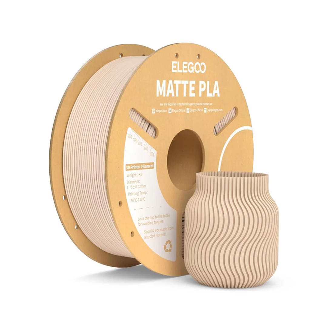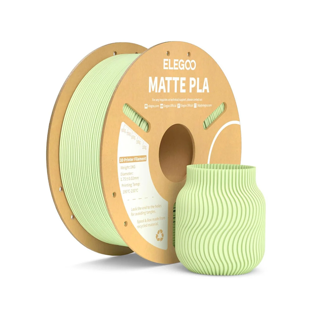 نوع فیلامنت: فیلامنت PLA مات برند ELEGOO تنوع رنگ: طیف رنگهای مات قطر فیلامنت: 1.75 میلیمتر (±0.02 میلیمتر) بافت سطح: ظاهر مات و یکدست با خطوط لایهای کمنمایان وزن خالص: 1 کیلوگرم چگالی: 1.26 گرم بر سانتیمتر مکعب استحکام کششی: حدود 30 ± 1 مگاپاسکال متراژ در هر رول: حدود 330 تا 335 متر سازگاری: قابل استفاده در اکثر پرینترهای سهبعدی FDM با صفحات ساخت مختلف بستهبندی: وکیومشده همراه با رطوبتگیر برای حفظ کیفیت چاپ